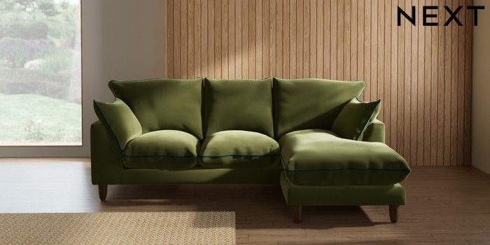 7.3.1 Buy Noa Deep Relaxed Sit Small Sofa Chaise - Universal Plush Velvet with Contrast Mid Olive Grn with Juniper Grn High Leg - Mid from the Seasons online shop Click here to use our website with more accessibility support, for example screen readers