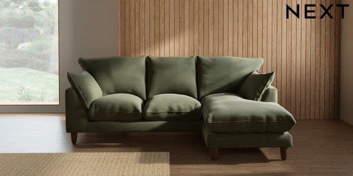 7.2.10 Buy Noa Deep Relaxed Sit Small Sofa Chaise - Universal Ripple Chenille Mid Moss Green High Leg - Mid from the Seasons online shop Click here to use our website with more accessibility support, for example screen readers