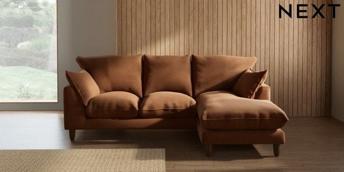 7.2.10 Buy Noa Deep Relaxed Sit Small Sofa Chaise - Universal Ripple Chenille Mid Rust Brown High Leg - Mid from the Seasons online shop Click here to use our website with more accessibility support, for example screen readers