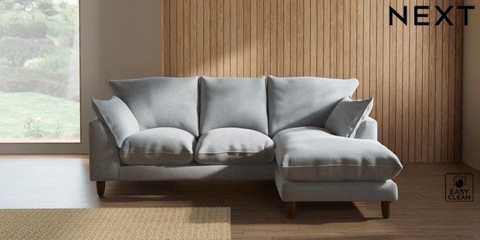 7.2.10 Buy Noa Deep Relaxed Sit Small Sofa Chaise - Universal Tweedy Blend Easy Clean Light Silver Grey High Leg - Mid from the Seasons online shop Click here to use our website with more accessibility support, for example screen readers