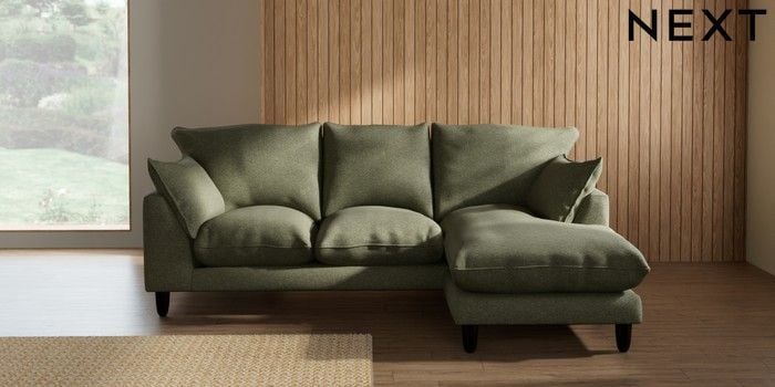 7.3.1 Buy Noa Deep Relaxed Sit Small Sofa Chaise - Universal Tweedy Chenille Mid Moss Green High Leg - Dark from the Seasons online shop Click here to use our website with more accessibility support, for example screen readers