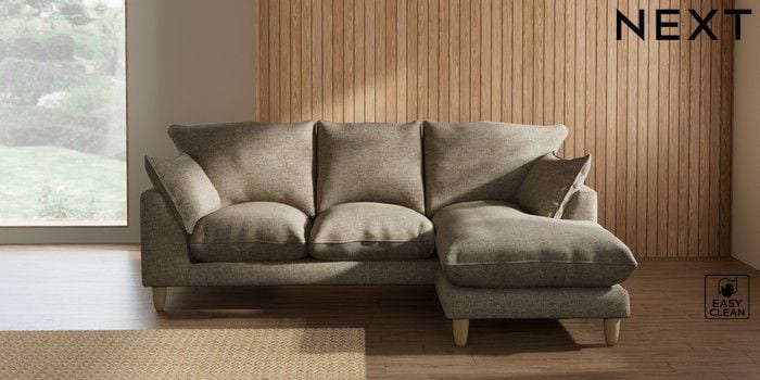 7.2.10 Buy Noa Deep Relaxed Sit Small Sofa Chaise - Universal Woven Chenille Easy Clean Mid Natural High Leg - Light from the Seasons online shop Click here to use our website with more accessibility support, for example screen readers