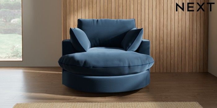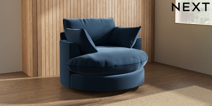 7.3.1 Buy Noa Deep Relaxed Sit Swivel Chair Plush Velvet with Contrast Airforce Blue with Navy Blue Built In Foot/Leg Missing from the Seasons online shop