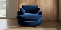 7.3.1 Buy Noa Deep Relaxed Sit Swivel Chair Plush Velvet with Contrast Navy Blue with Ginger Orange Built In Foot/Leg Missing from the Seasons online shop