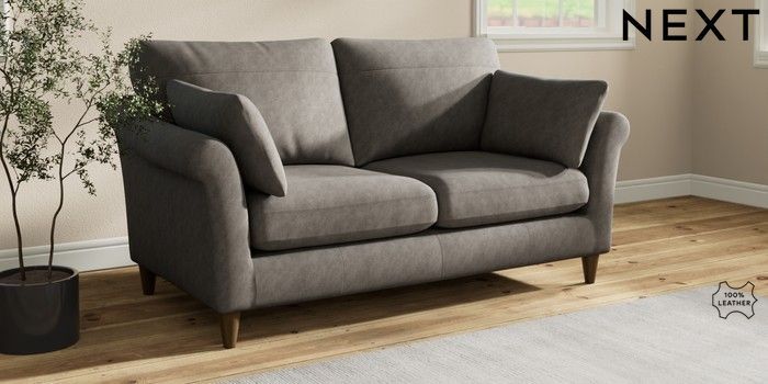 7.2.10 Buy Oakham Leather 3 Seater Small Sofa Antiqued Leather Grey Low Conical - Mid from the Seasons online shop Click here to use our website with more accessibility support, for example screen readers