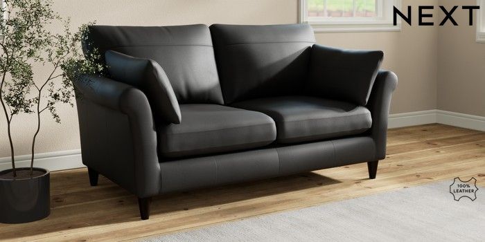 7.2.10 Buy Oakham Leather 3 Seater Small Sofa Columbia Black Low Conical - Dark from the Seasons online shop Click here to use our website with more accessibility support, for example screen readers