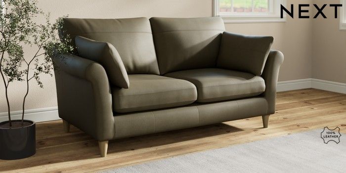 7.2.10 Buy Oakham Leather 3 Seater Small Sofa Turin Leather Moss Green Low Conical - Light from the Seasons online shop Click here to use our website with more accessibility support, for example screen readers