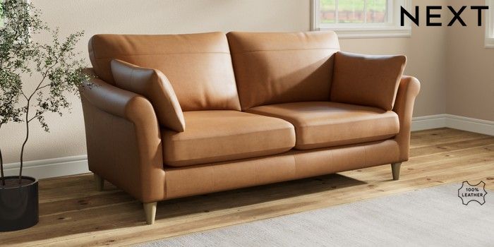 7.2.10 Buy Oakham Leather 3 Seater Sofa Antiqued Leather Light Tan Brown Low Conical - Light from the Seasons online shop Click here to use our website with more accessibility support, for example screen readers