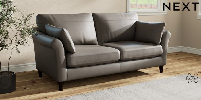 7.3.1 Buy Oakham Leather 3 Seater Sofa Turin Leather French Grey Low Conical - Dark from the Seasons online shop Click here to use our website with more accessibility support, for example screen readers