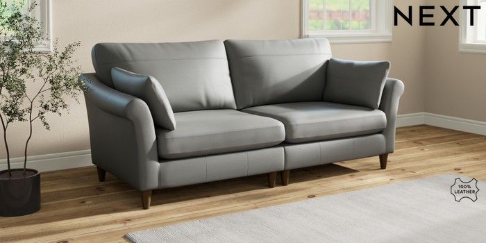 7.3.1 Buy Oakham Leather 4 Seater Sofa Columbia French Grey Low Conical - Mid from the Seasons online shop Click here to use our website with more accessibility support, for example screen readers