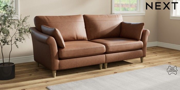 7.2.10 Buy Oakham Leather 4 Seater Sofa Rustic Leather Light Brown Low Conical - Light from the Seasons online shop Click here to use our website with more accessibility support, for example screen readers