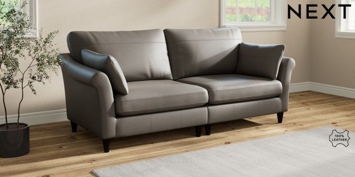 7.3.1 Buy Oakham Leather 4 Seater Sofa Turin Leather French Grey Low Conical - Dark from the Seasons online shop Click here to use our website with more accessibility support, for example screen readers