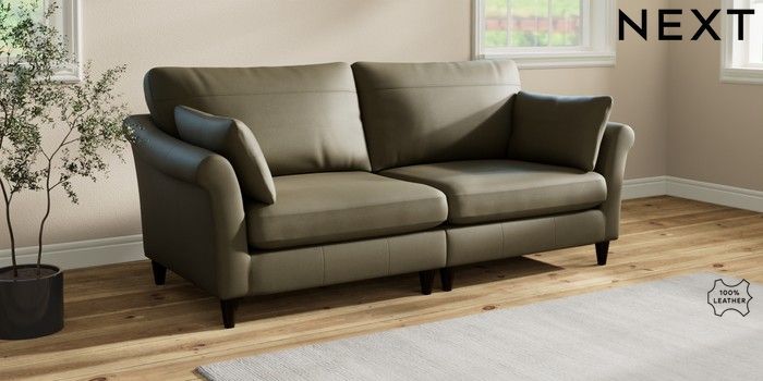 7.2.10 Buy Oakham Leather 4 Seater Sofa Turin Leather Moss Green Low Conical - Dark from the Seasons online shop Click here to use our website with more accessibility support, for example screen readers