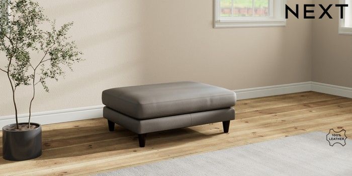 7.3.1 Buy Oakham Leather Footstool Turin Leather French Grey Low Conical - Dark from the Seasons online shop Click here to use our website with more accessibility support, for example screen readers