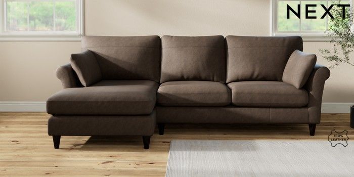 7.2.10 Buy Oakham Leather Medium Sofa Chaise - Left Hand Antiqued Leather Dark Brown Low Conical - Dark from the Seasons online shop Click here to use our website with more accessibility support, for example screen readers