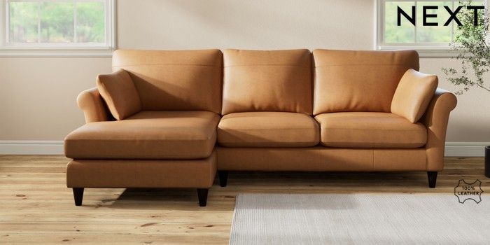 7.2.10 Buy Oakham Leather Medium Sofa Chaise - Left Hand Antiqued Leather Light Tan Brown Low Conical - Dark from the Seasons online shop Click here to use our website with more accessibility support, for example screen readers