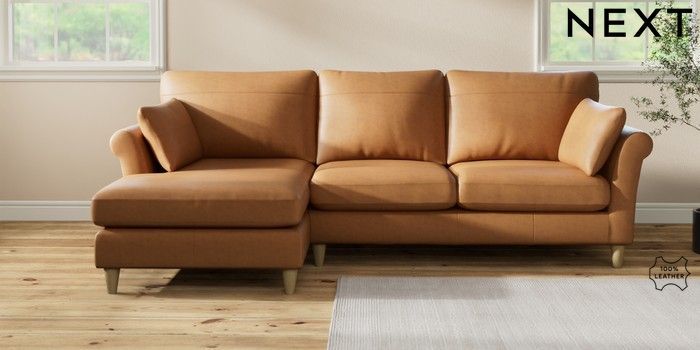 7.2.10 Buy Oakham Leather Medium Sofa Chaise - Left Hand Antiqued Leather Light Tan Brown Low Conical - Light from the Seasons online shop Click here to use our website with more accessibility support, for example screen readers