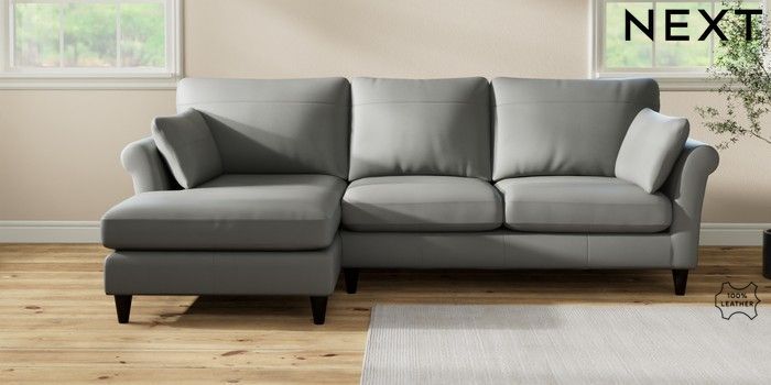 7.2.10 Buy Oakham Leather Medium Sofa Chaise - Left Hand Columbia French Grey Low Conical - Dark from the Seasons online shop Click here to use our website with more accessibility support, for example screen readers