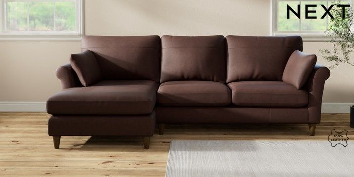7.2.10 Buy Oakham Leather Medium Sofa Chaise - Left Hand Rustic Leather Dark Brown Low Conical - Mid from the Seasons online shop Click here to use our website with more accessibility support, for example screen readers