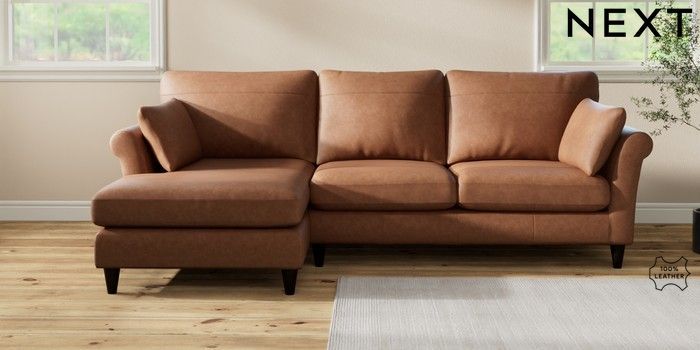 7.2.10 Buy Oakham Leather Medium Sofa Chaise - Left Hand Rustic Leather Light Brown Low Conical - Dark from the Seasons online shop Click here to use our website with more accessibility support, for example screen readers