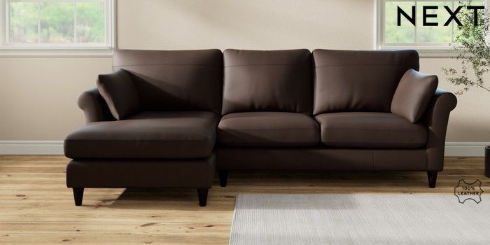 7.2.10 Buy Oakham Leather Medium Sofa Chaise - Left Hand Turin Leather Dark Brown Low Conical - Dark from the Seasons online shop Click here to use our website with more accessibility support, for example screen readers