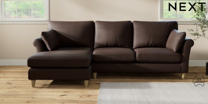 7.2.10 Buy Oakham Leather Medium Sofa Chaise - Left Hand Turin Leather Dark Brown Low Conical - Light from the Seasons online shop Click here to use our website with more accessibility support, for example screen readers