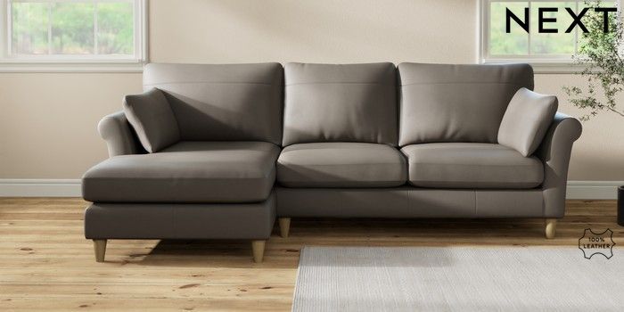7.2.10 Buy Oakham Leather Medium Sofa Chaise - Left Hand Turin Leather French Grey Low Conical - Light from the Seasons online shop Click here to use our website with more accessibility support, for example screen readers