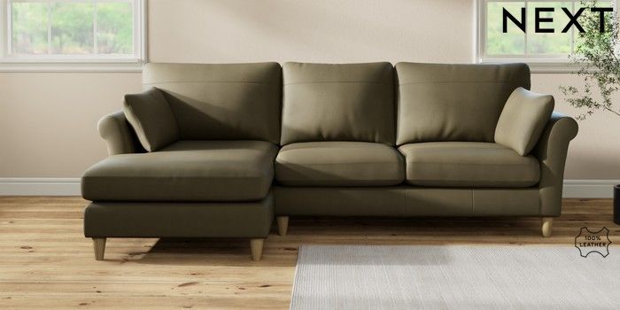 7.2.10 Buy Oakham Leather Medium Sofa Chaise - Left Hand Turin Leather Moss Green Low Conical - Light from the Seasons online shop Click here to use our website with more accessibility support, for example screen readers