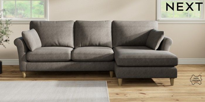 7.2.10 Buy Oakham Leather Medium Sofa Chaise - Right Hand Antiqued Leather Grey Low Conical - Light from the Seasons online shop Click here to use our website with more accessibility support, for example screen readers