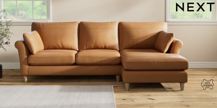 7.2.10 Buy Oakham Leather Medium Sofa Chaise - Right Hand Antiqued Leather Light Tan Brown Low Conical - Light from the Seasons online shop Click here to use our website with more accessibility support, for example screen readers