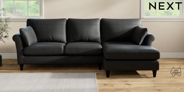 7.2.10 Buy Oakham Leather Medium Sofa Chaise - Right Hand Columbia Black Low Conical - Dark from the Seasons online shop Click here to use our website with more accessibility support, for example screen readers