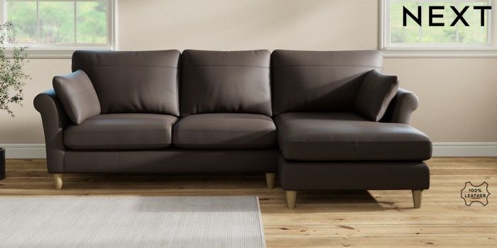 7.2.10 Buy Oakham Leather Medium Sofa Chaise - Right Hand Columbia Dark Brown Low Conical - Light from the Seasons online shop Click here to use our website with more accessibility support, for example screen readers