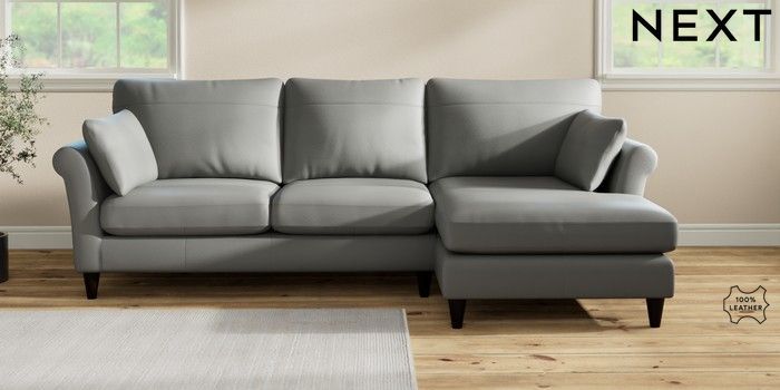 7.3.1 Buy Oakham Leather Medium Sofa Chaise - Right Hand Columbia French Grey Low Conical - Dark from the Seasons online shop Click here to use our website with more accessibility support, for example screen readers