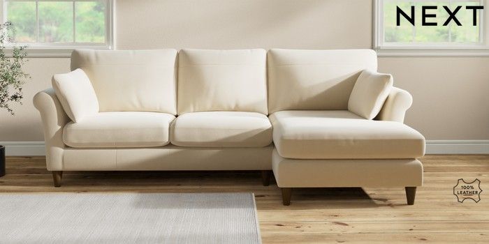 7.2.10 Buy Oakham Leather Medium Sofa Chaise - Right Hand Turin Leather Cream Low Conical - Mid from the Seasons online shop Click here to use our website with more accessibility support, for example screen readers
