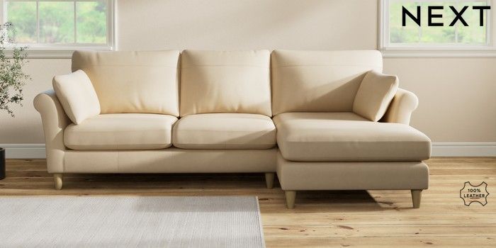 7.2.10 Buy Oakham Leather Medium Sofa Chaise - Right Hand Turin Leather Light Natural Low Conical - Light from the Seasons online shop Click here to use our website with more accessibility support, for example screen readers