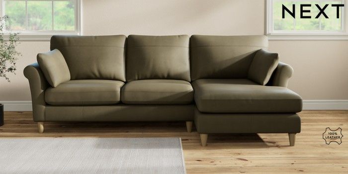 7.2.10 Buy Oakham Leather Medium Sofa Chaise - Right Hand Turin Leather Moss Green Low Conical - Light from the Seasons online shop Click here to use our website with more accessibility support, for example screen readers