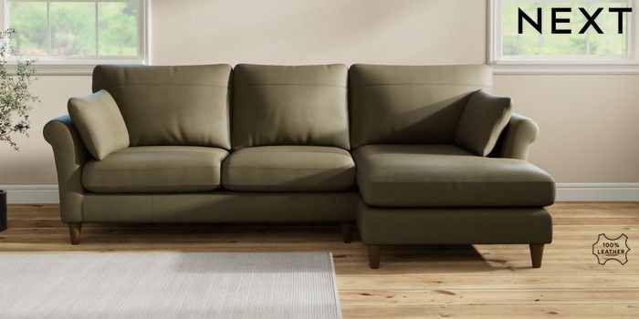 7.2.10 Buy Oakham Leather Medium Sofa Chaise - Right Hand Turin Leather Moss Green Low Conical - Mid from the Seasons online shop Click here to use our website with more accessibility support, for example screen readers