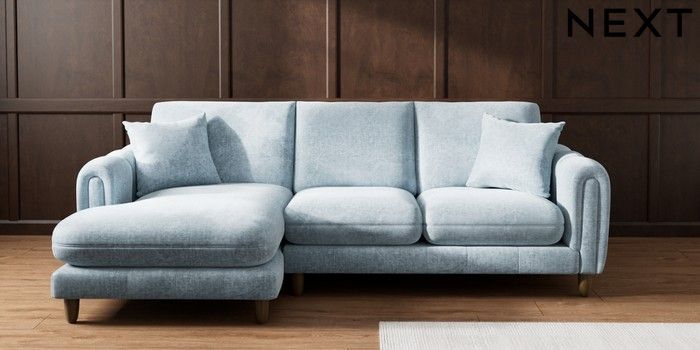7.2.10 Buy Odella Medium Sofa Chaise - Left Hand Plush Chenille Light Blue High Leg - Mid from the Seasons online shop Click here to use our website with more accessibility support, for example screen readers