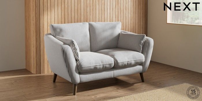 7.3.1 Buy Orlo Relaxed Sit 2 Seater Small Sofa Chenille Stripe Slate Blue Retro Tapered - Mid from the Seasons online shop Click here to use our website with more accessibility support, for example screen readers
