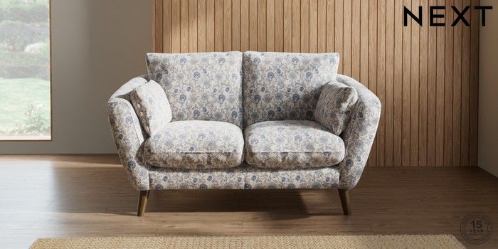 7.3.1 Buy Orlo Relaxed Sit 2 Seater Small Sofa Relaxed Linen Look Print Woodblock Floral Blue Retro Tapered - Mid from the Seasons online shop