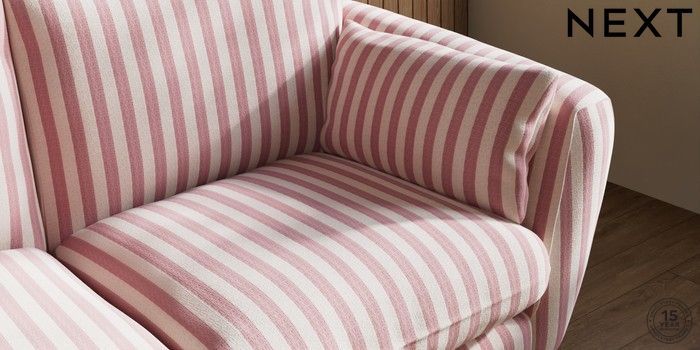 7.3.1 Buy Orlo Relaxed Sit 3 Seater Small Sofa Bold Chenille Stripe Dark Pink Retro Tapered - Mid from the Seasons online shop Click here to use our website with more accessibility support, for example screen readers