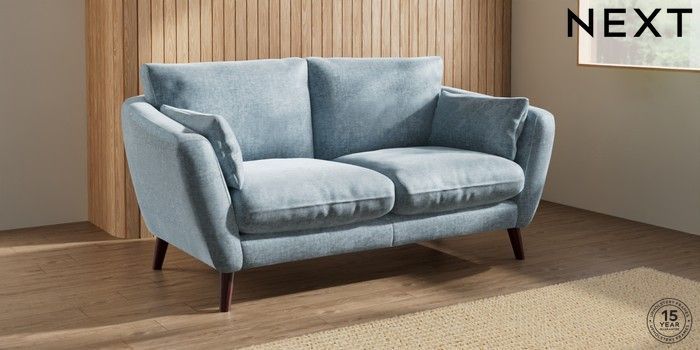 7.3.1 Buy Orlo Relaxed Sit 3 Seater Small Sofa Plush Chenille Light Blue Retro Tapered - Dark Brown from the Seasons online shop Click here to use our website with more accessibility support, for example screen readers