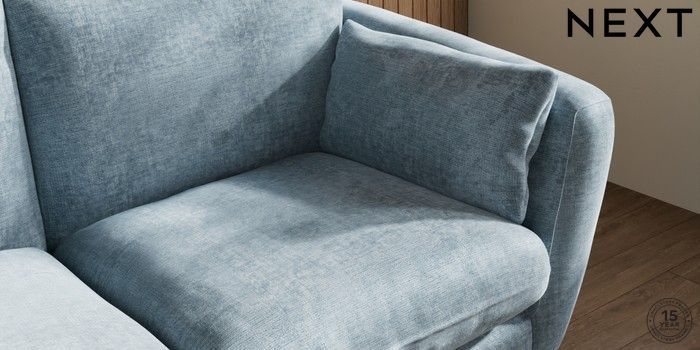 7.3.1 Buy Orlo Relaxed Sit 3 Seater Small Sofa Plush Chenille Light Blue Retro Tapered - Light from the Seasons online shop Click here to use our website with more accessibility support, for example screen readers