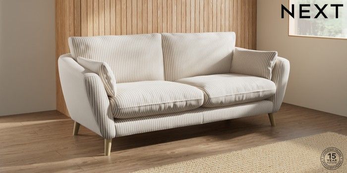 7.3.1 Buy Orlo Relaxed Sit 3 Seater Sofa Chenille Stripe Natural Retro Tapered - Light from the Seasons online shop Click here to use our website with more accessibility support, for example screen readers