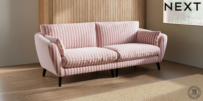 7.3.1 Buy Orlo Relaxed Sit 4 Seater Sofa Bold Chenille Stripe Dark Pink Retro Tapered - Dark from the Seasons online shop Click here to use our website with more accessibility support, for example screen readers