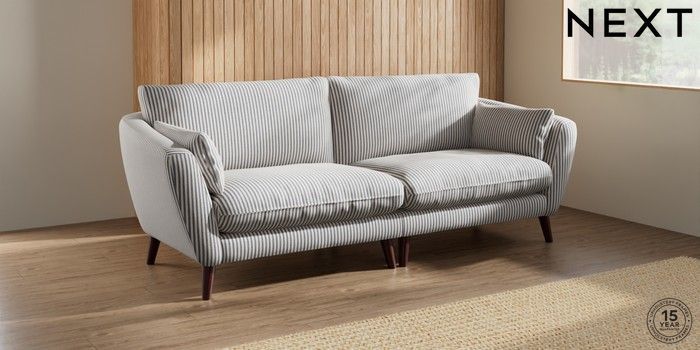 7.3.1 Buy Orlo Relaxed Sit 4 Seater Sofa Chenille Stripe Slate Blue Retro Tapered - Dark Brown from the Seasons online shop Click here to use our website with more accessibility support, for example screen readers