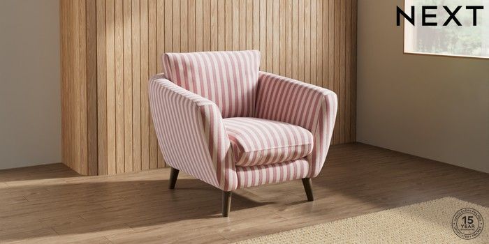 7.3.1 Buy Orlo Relaxed Sit Armchair Bold Chenille Stripe Dark Pink Retro Tapered - Mid from the Seasons online shop Click here to use our website with more accessibility support, for example screen readers