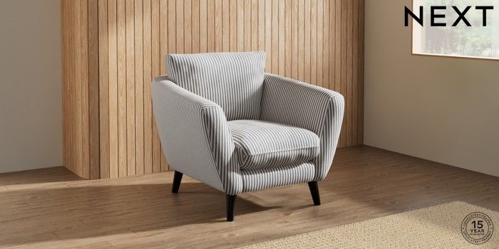 7.3.1 Buy Orlo Relaxed Sit Armchair Chenille Stripe Slate Blue Retro Tapered - Dark from the Seasons online shop Click here to use our website with more accessibility support, for example screen readers
