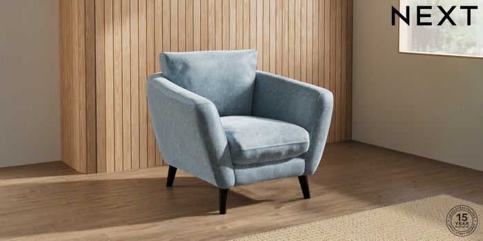 7.3.1 Buy Orlo Relaxed Sit Armchair Plush Chenille Light Blue Retro Tapered - Dark from the Seasons online shop Click here to use our website with more accessibility support, for example screen readers
