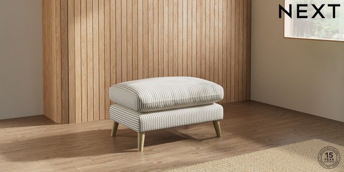 7.3.1 Buy Orlo Relaxed Sit Footstool Chenille Stripe Moss Green Retro Tapered - Light from the Seasons online shop Click here to use our website with more accessibility support, for example screen readers